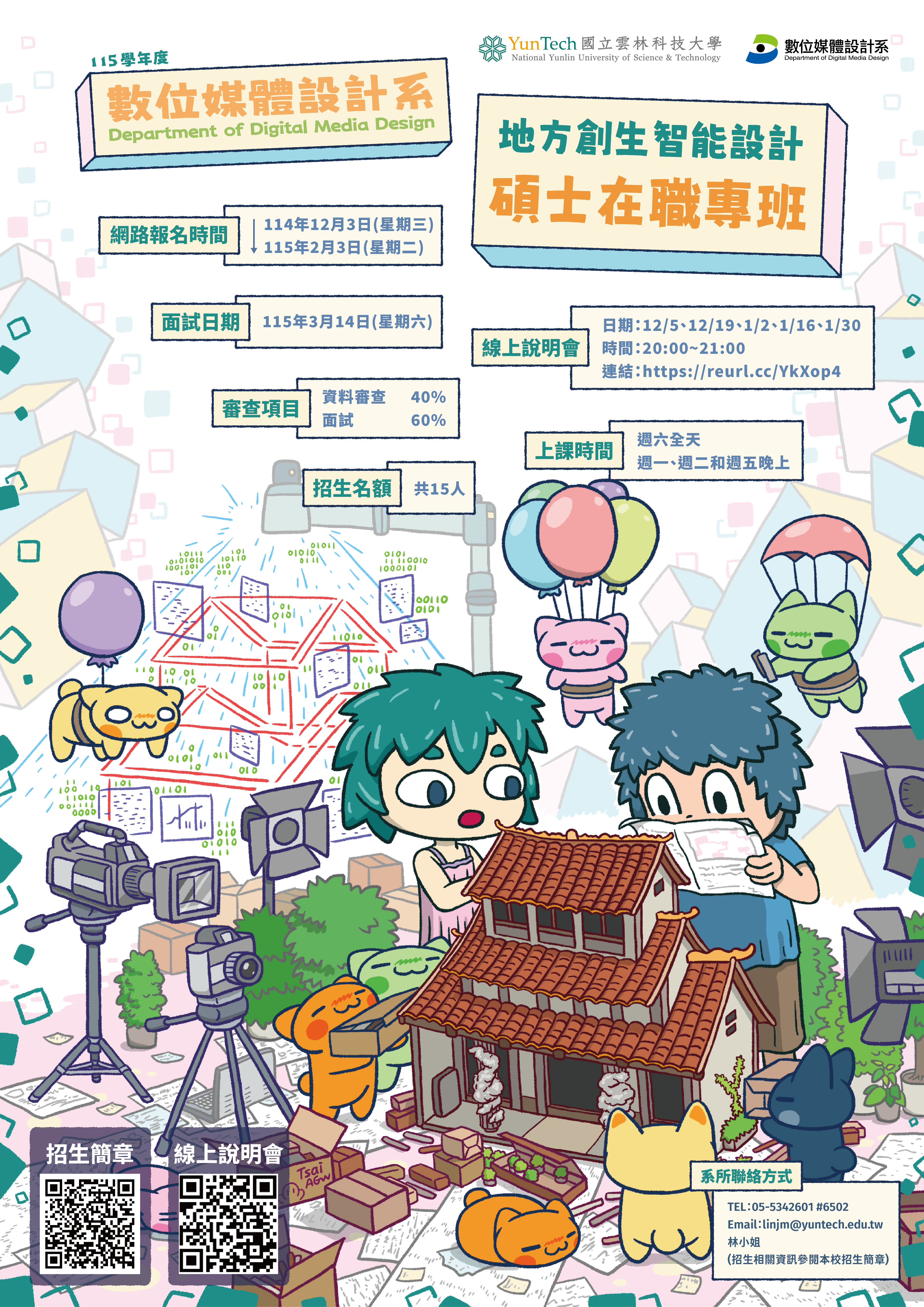 轉知國立雲林科技大學數位媒體設計系115學年度「地方創生智能設計碩士在職專班」招生簡章