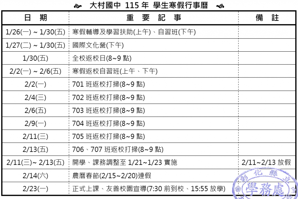 本校謹訂於115年2月2日(星期一)下午13點,於2樓視聽教室召開114...